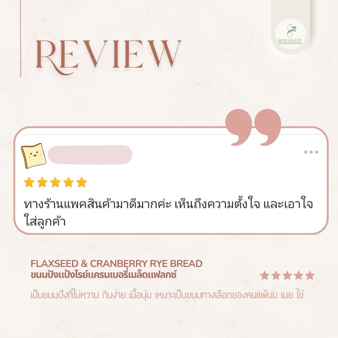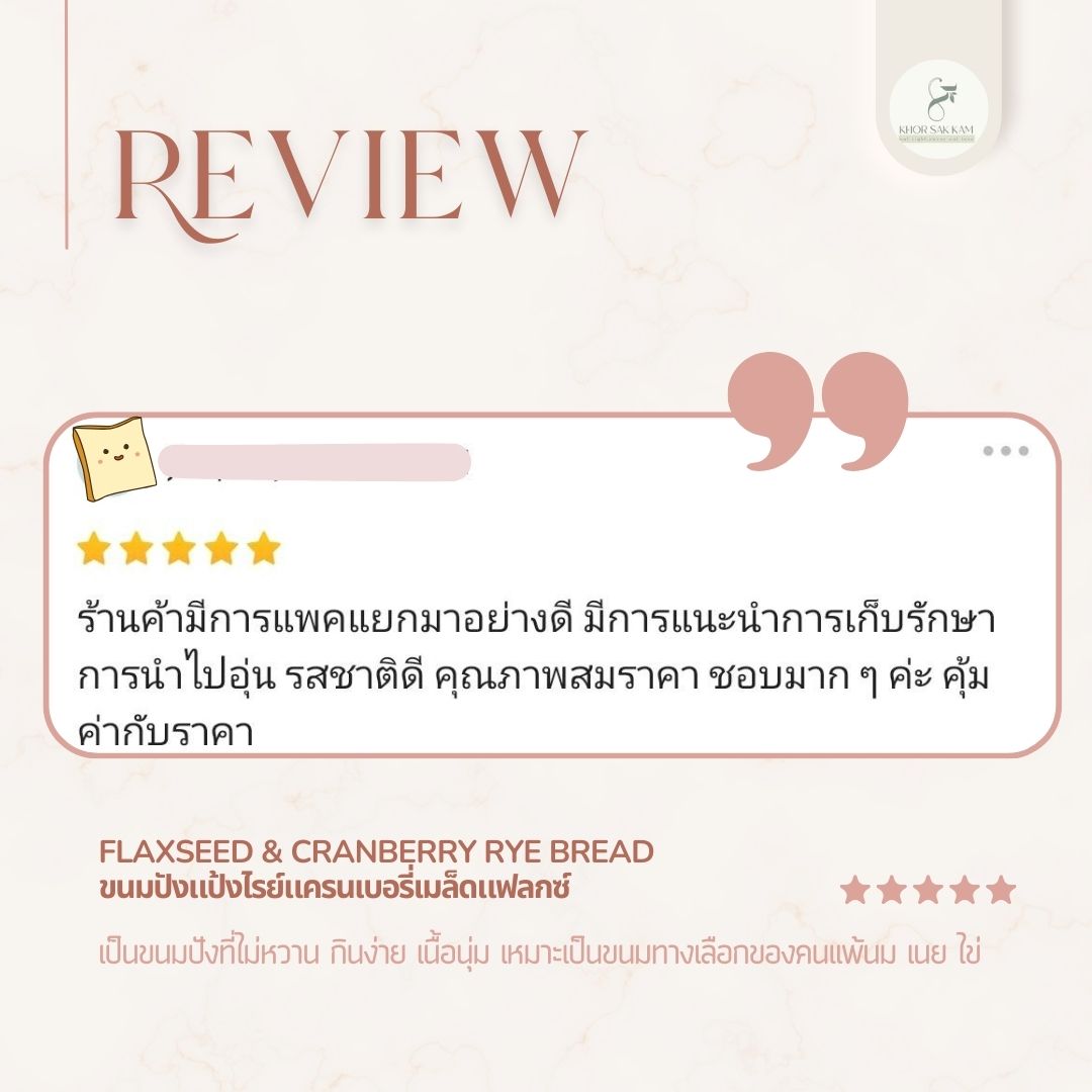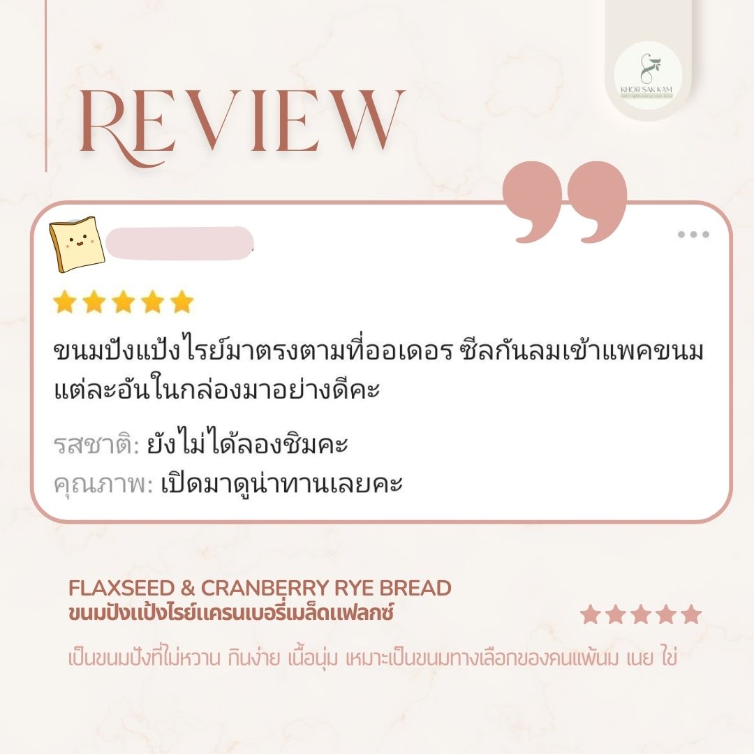 🪭 รสชาติโดยรวม: ขนมปังนุ่มที่มีรสหวานอ่อนๆ อมเปรี้ยวนิดๆ เนื้อสัมผัสกรุบๆ จากเมล็ดแฟลกซ์ ขนมปังมีกลิ่นหอมอ่อนๆของน้ำผึ้งป่า บวกกับกลิ่นจมูกข้าวสาลีคั่ว เนื้อขนมปังหวานน้อยมาก ไม่มีการผสมน้ำตาลทราย หรือสารให้ความหวานอื่นๆนอกจากน้ำผึ้งแท้ในปริมาณเล็กน้อยเท่านั้น