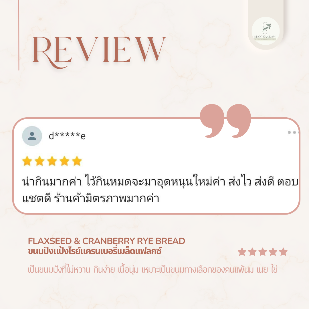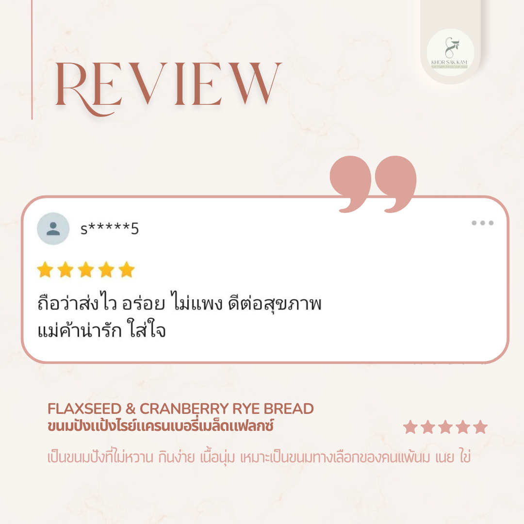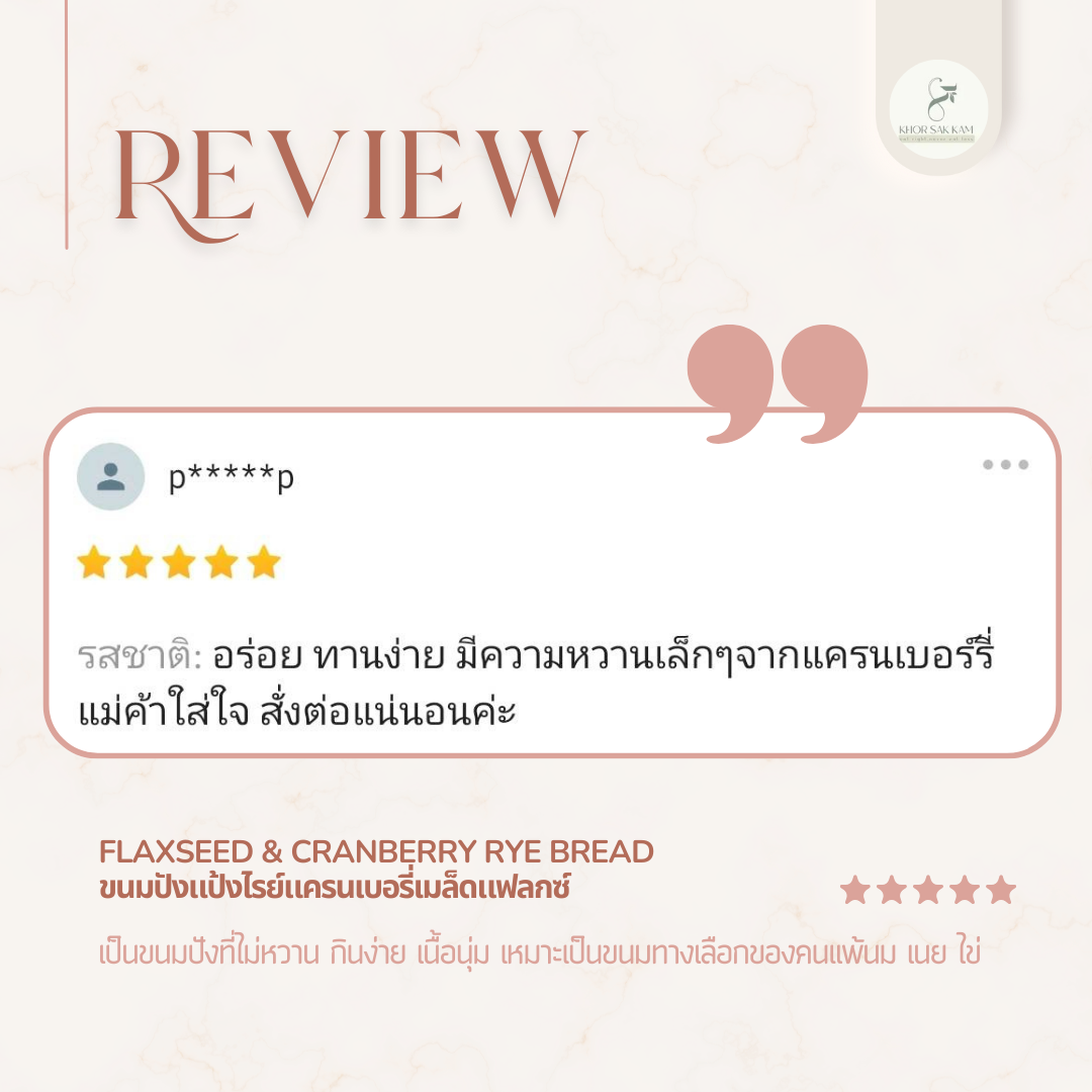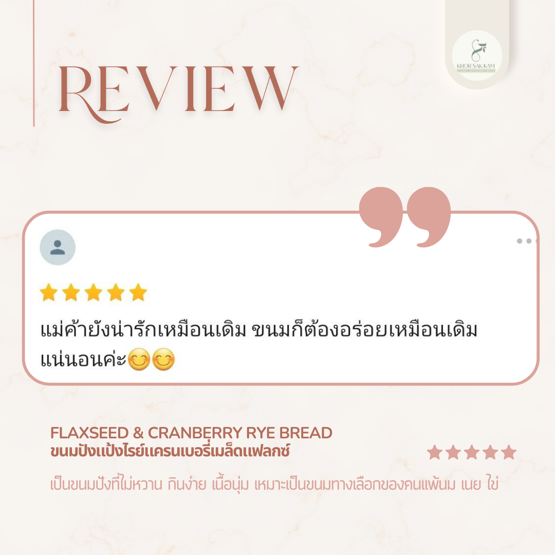 🪭 รสชาติโดยรวม: ขนมปังนุ่มที่มีรสหวานอ่อนๆ อมเปรี้ยวนิดๆ เนื้อสัมผัสกรุบๆ จากเมล็ดแฟลกซ์ ขนมปังมีกลิ่นหอมอ่อนๆของน้ำผึ้งป่า บวกกับกลิ่นจมูกข้าวสาลีคั่ว เนื้อขนมปังหวานน้อยมาก ไม่มีการผสมน้ำตาลทราย หรือสารให้ความหวานอื่นๆนอกจากน้ำผึ้งแท้ในปริมาณเล็กน้อยเท่านั้น