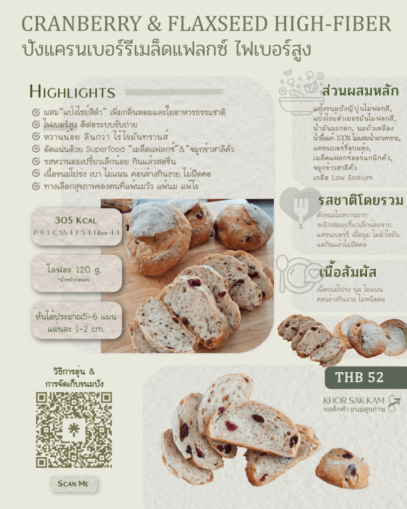 Cranberry & Flaxseed High-Fiber Bread 🍞ปังแครนเบอร์รี่เมล็ดแฟล็กซ์ ไฟเบอร์สูง